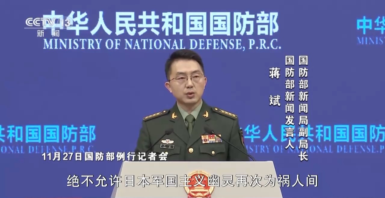 国防部新闻局副局长 国防部新闻发言人 蒋斌:绝不允许日本军国主义幽灵再次为祸人间。