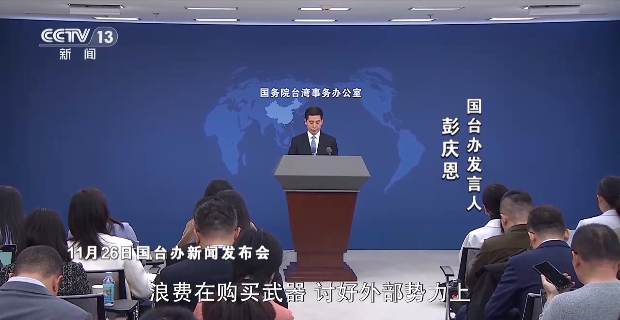 国台办发言人 彭庆恩:民进党当局为了一己私利,任由外部势力予取予求,将本可以用来改善民生、发展经济的钱浪费在购买武器、讨好外部势力上,只会把台湾推入灾难境地。
